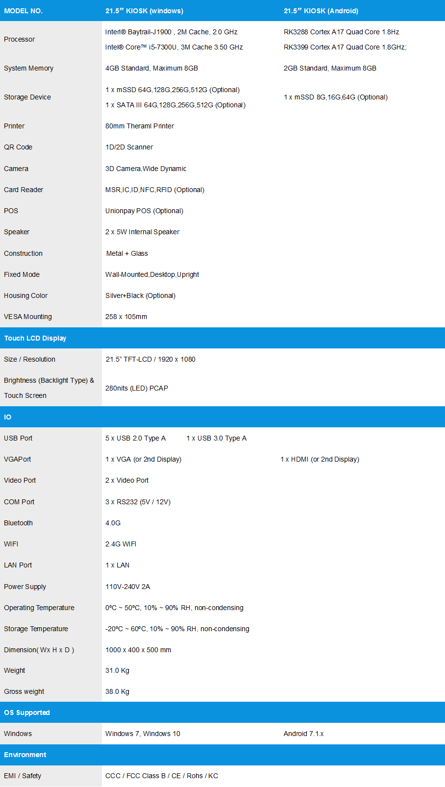 Standard Screen Size: 15.6",21.5"